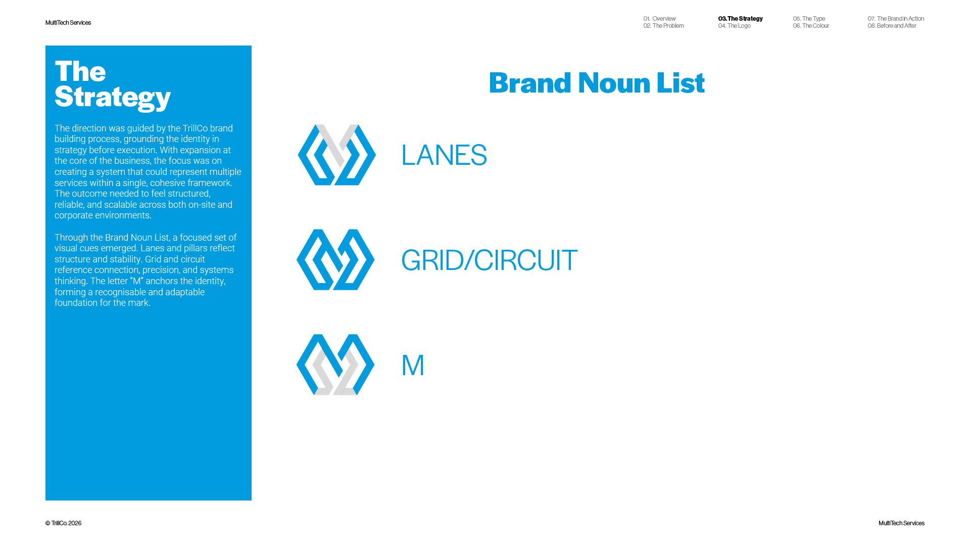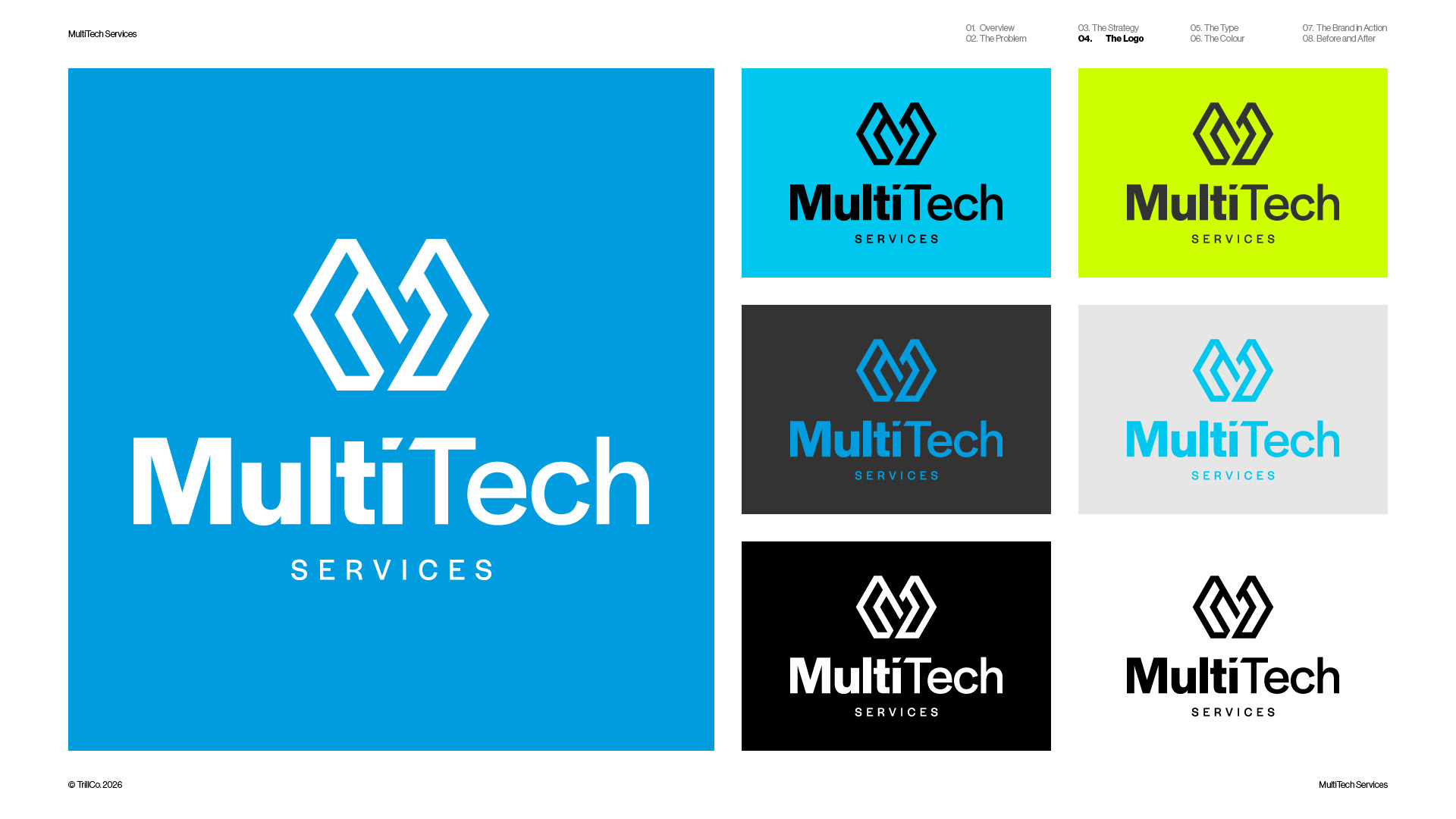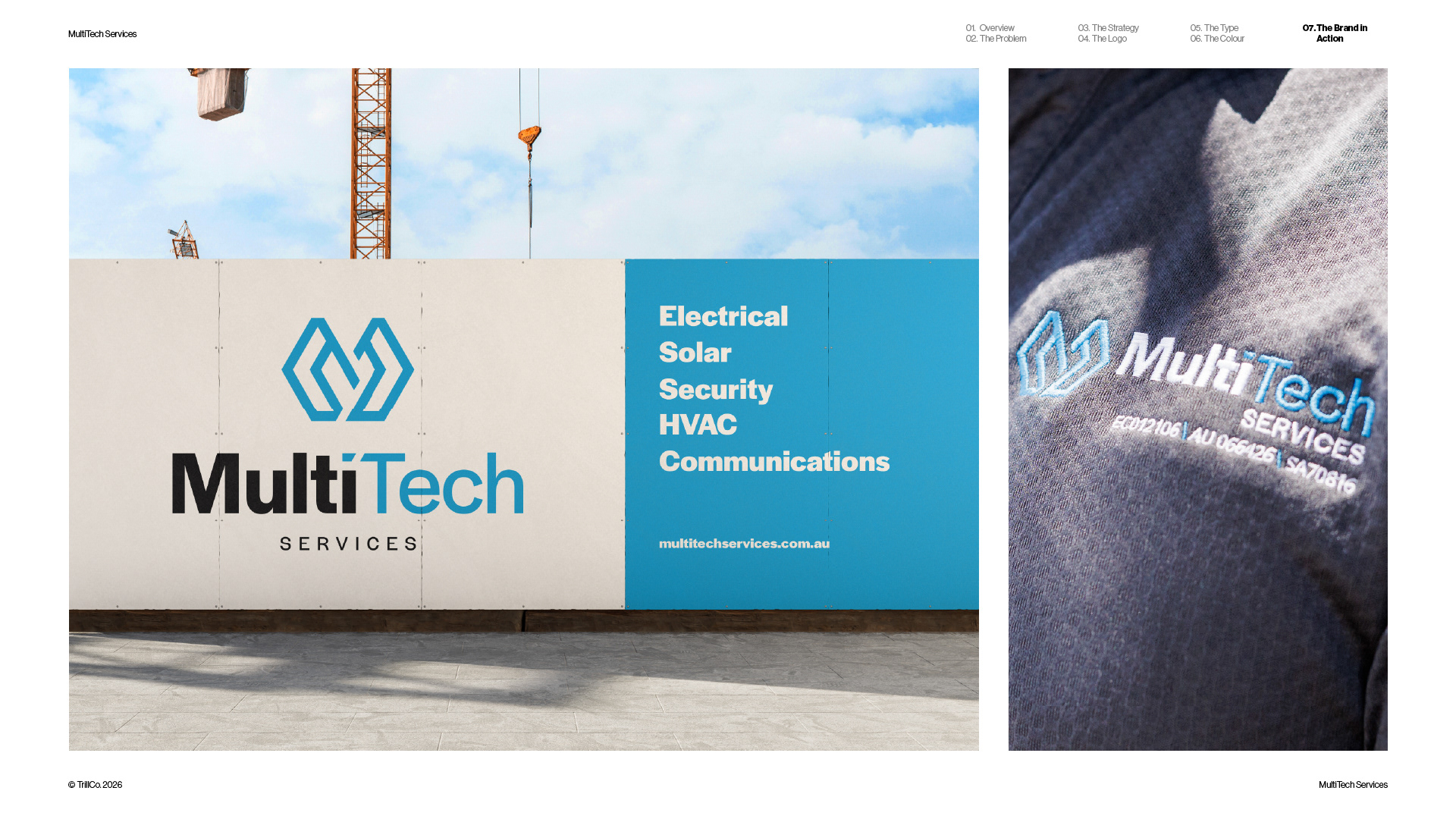 A strategic rebrand for MultiTech Services, a full-service trade provider operating across the construction industry. As the business expanded beyond its electrical roots, the identity required a more structured and scalable approach. Guided by the TrillCo brand building process, the outcome centres on clarity, connection, and system thinking. Built from the ideas of structure, grid, and integration, the identity reflects how multiple services operate within a single, cohesive framework. The result is a modern, adaptable brand designed to support growth and maintain consistency across every touchpoint.
