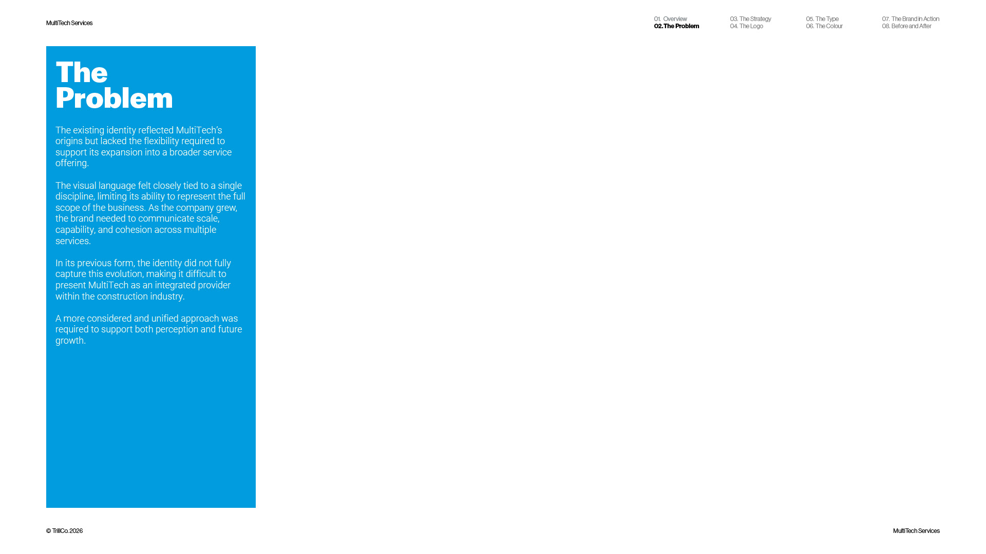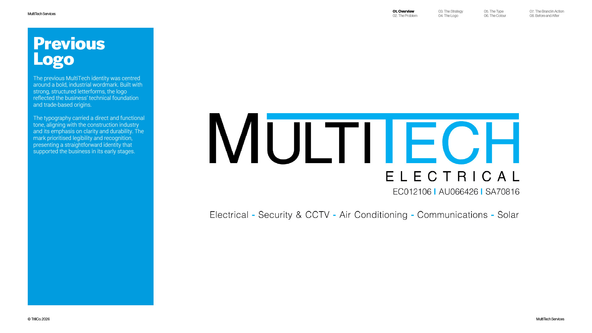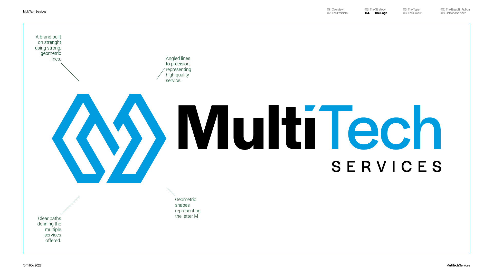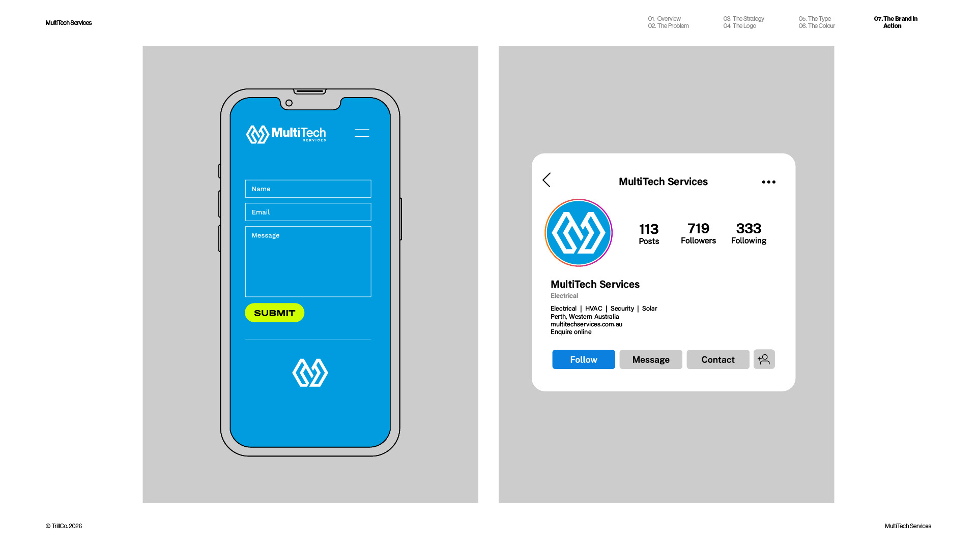A strategic rebrand for MultiTech Services, a full-service trade provider operating across the construction industry. As the business expanded beyond its electrical roots, the identity required a more structured and scalable approach. Guided by the TrillCo brand building process, the outcome centres on clarity, connection, and system thinking. Built from the ideas of structure, grid, and integration, the identity reflects how multiple services operate within a single, cohesive framework. The result is a modern, adaptable brand designed to support growth and maintain consistency across every touchpoint.